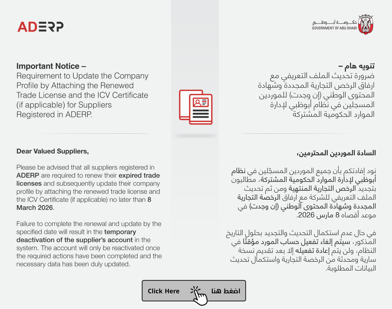 Organizations interested in doing business with Abu Dhabi Government Entities must complete the registration on the Procurement Gate - information technology platform of the Government for procurement running on ADERP.
